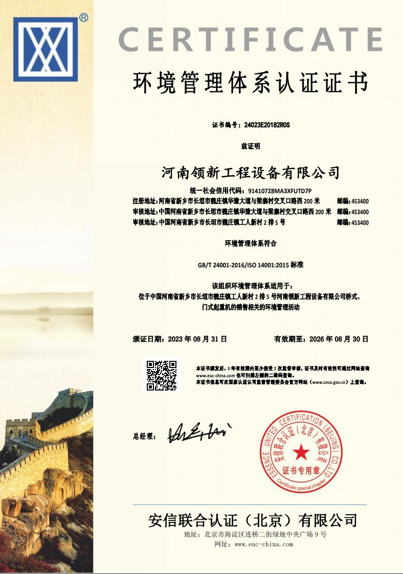 環(huán)境管理體系認(rèn)證證書
